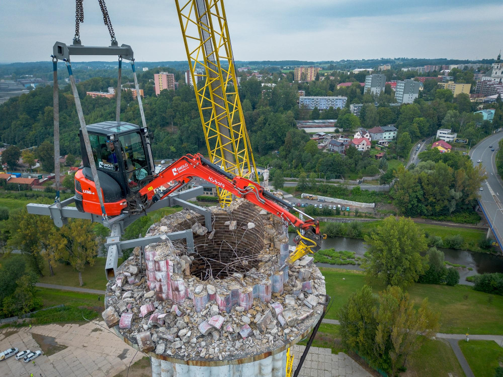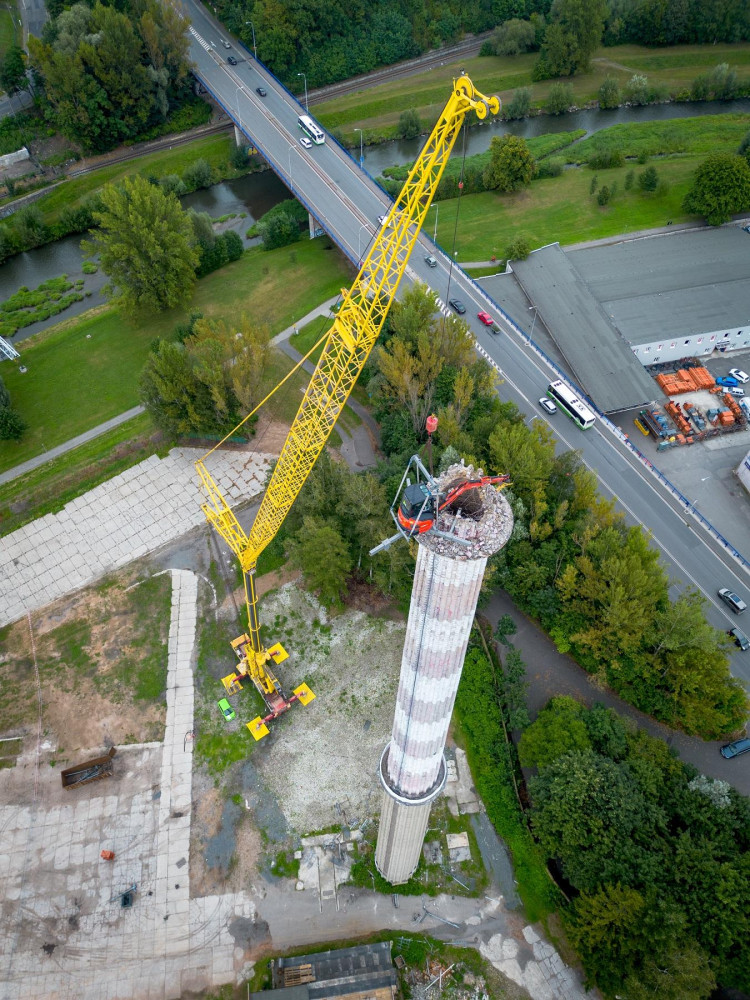 Demolice komunistického komínu ve Frýdku-Místku začala symbolicky na výročí sovětské okupace