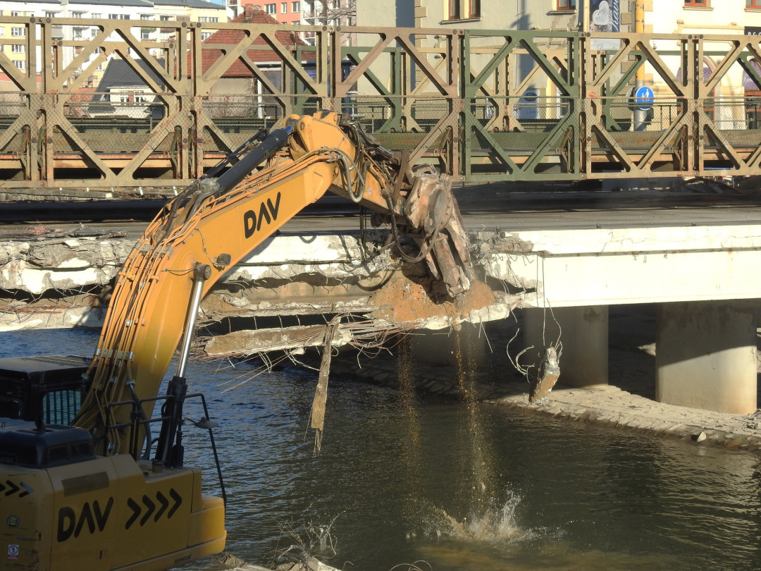 FOTO: Poškozený most v Ratibořské ulici jde k zemi. Opavské mostní provizorium zůstane během víkendu uzavřené