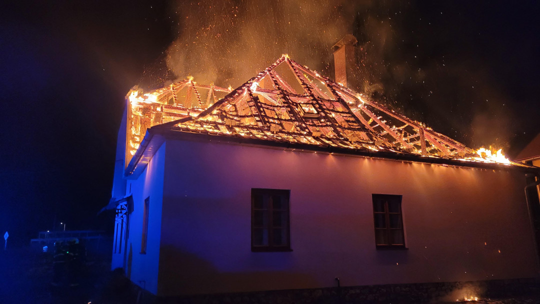 V Lichnově na Novojičínsku hořela fara. Při zásahu se zranil dobrovolný hasič, střecha lehla popelem