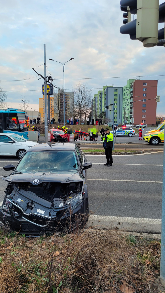 FOTO: Při nehodě v Ostravě se zranilo šest lidí, řidič taxi jel asi na červenou