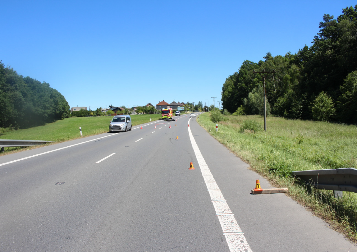 Motorkář najel na dřevěný hranol, spadl a těžce se zranil. Policie hledá svědky