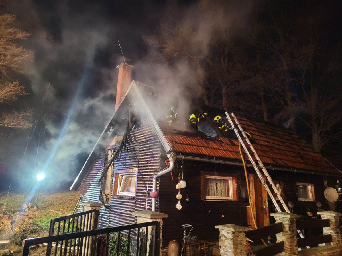 Požár chaty na Bruntálsku způsobil škodu dva miliony, žena se nadýchala kouře