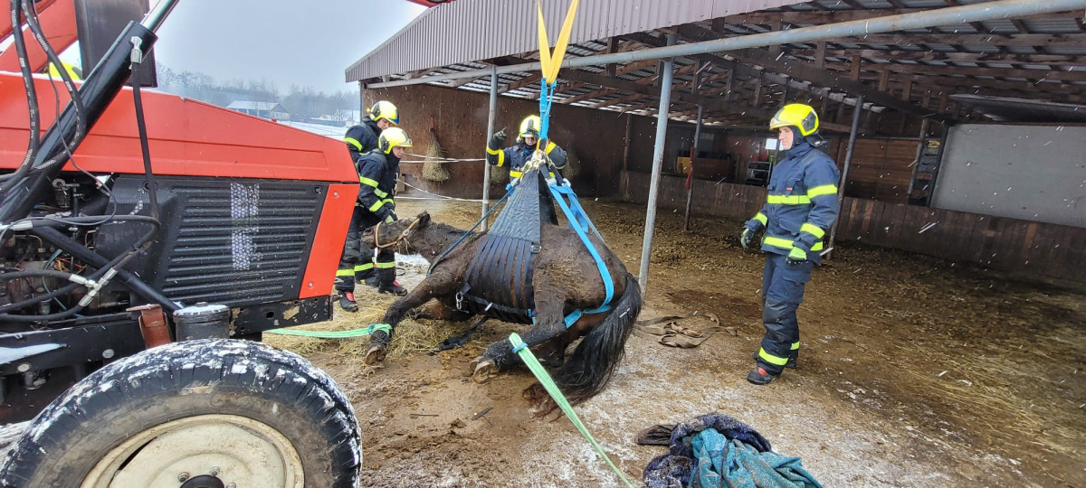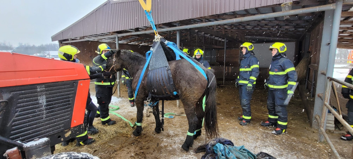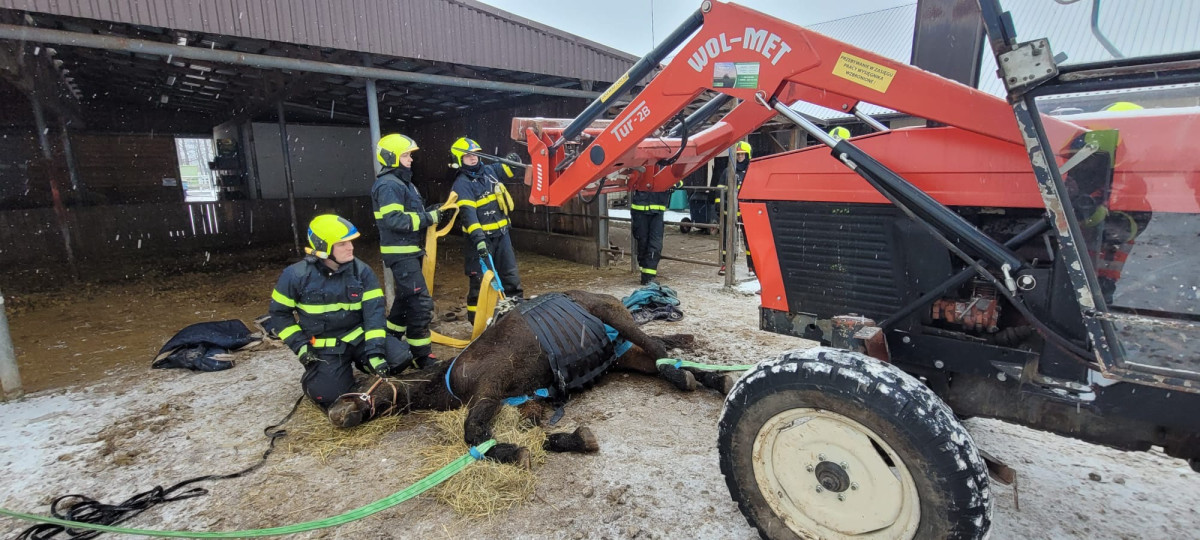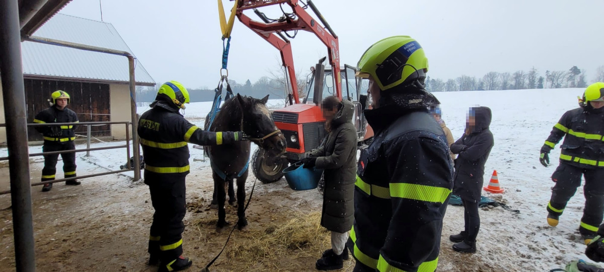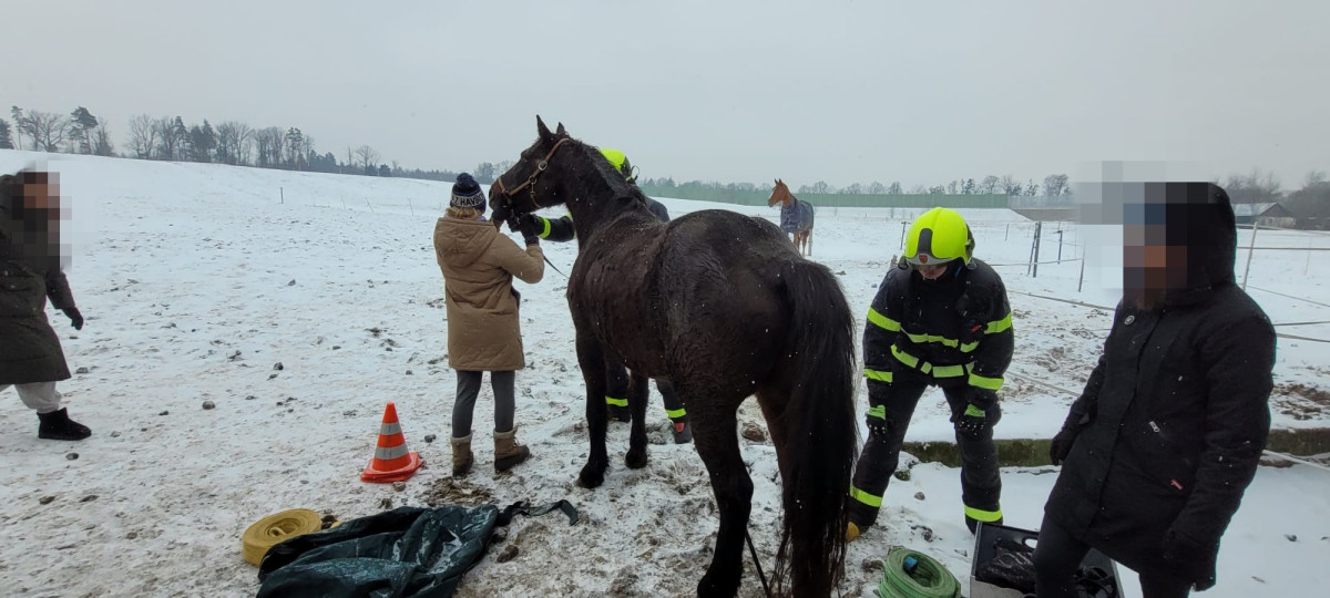 Záchrana kobyly Emilie zaměstnala hasiče, klisna upadla a nedokázala sama vstát