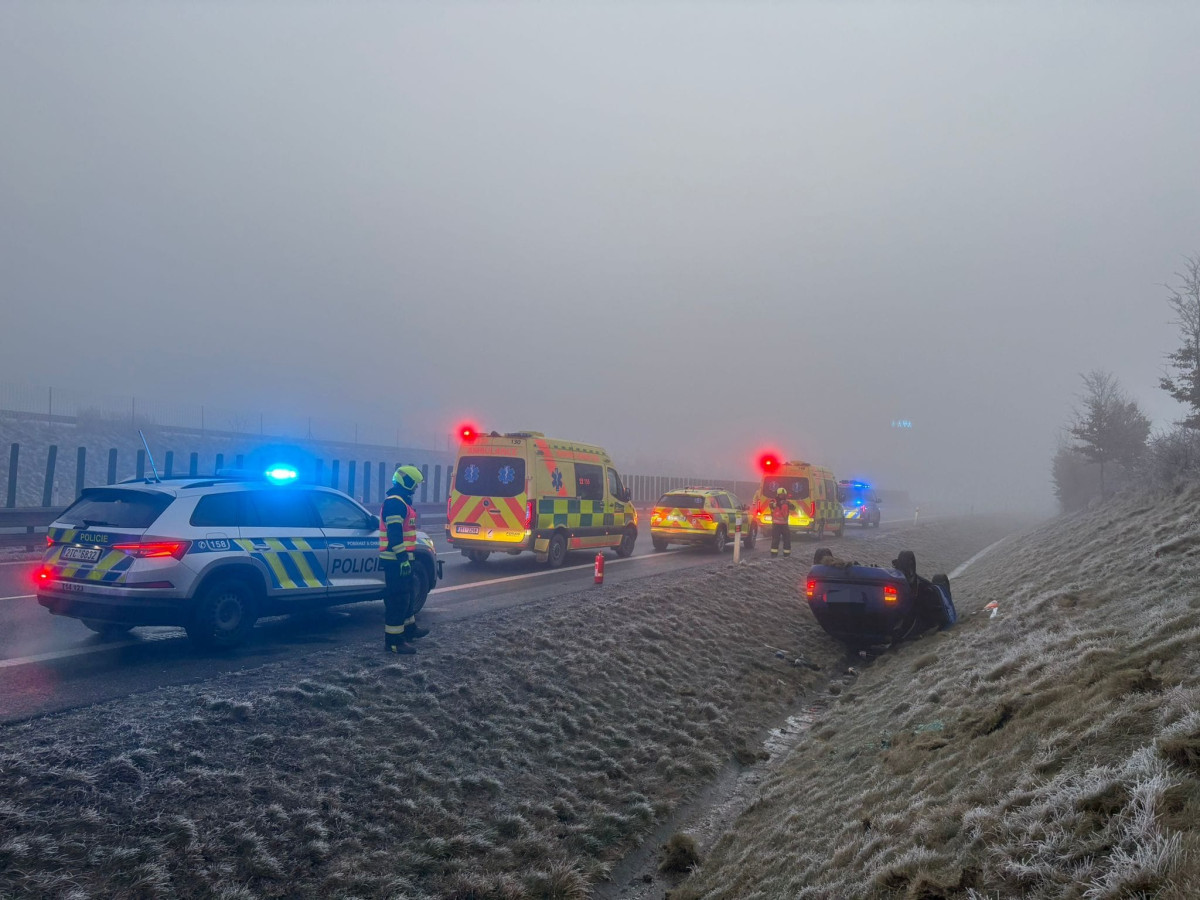 Silnice u Velké Polomi je kvůli velkému počtu nehod uzavřená. Na cestách je námraza