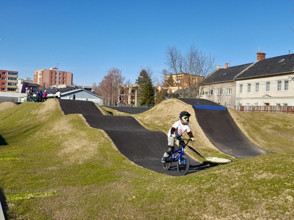 FOTO: V Novém Jičíně je otevřený nový pumptrack. Lidé nesmí šlapat na trávník