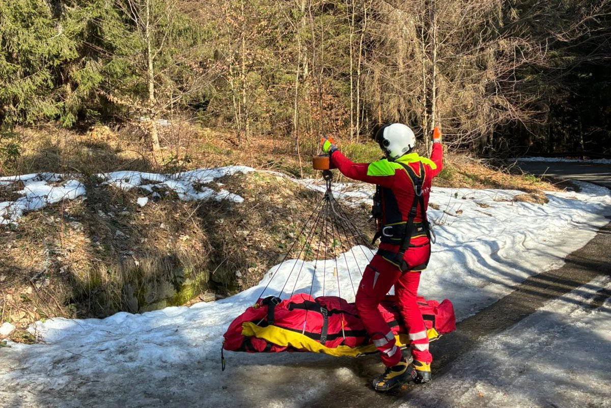 Turistka uklouzla na namrznuté stezce v Beskydech. Zachraňoval ji vrtulník s jeřábem