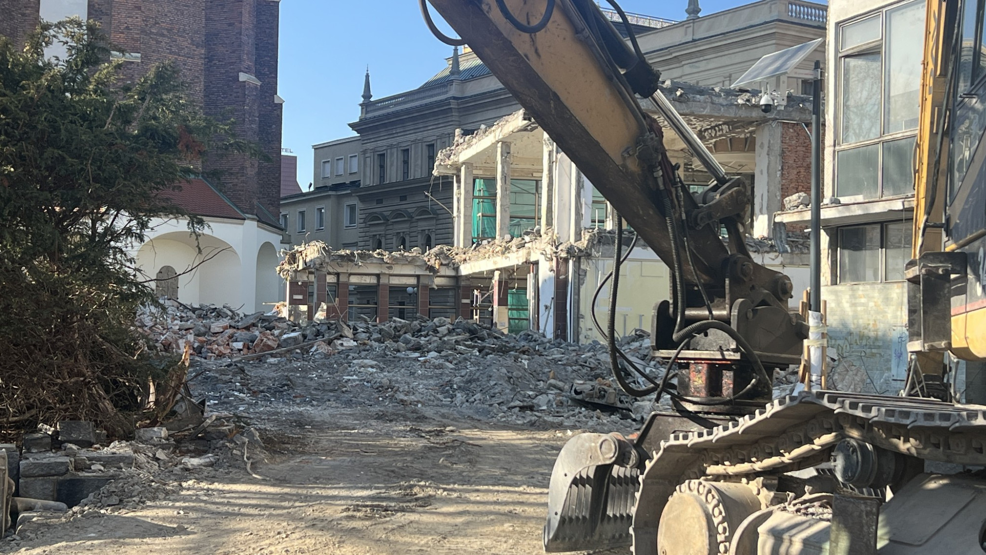 Demolice Slezanky finišuje, dělníci odvážejí trosky. Hotovo má být v ještě dubnu