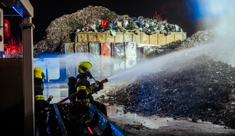 „Už při příjezdu prvních jednotek byl viditelný hustý černý kouř. Prvotním průzkumem bylo zjištěno, že se jedná o požár uskladněného drceného odpadu z autovraků