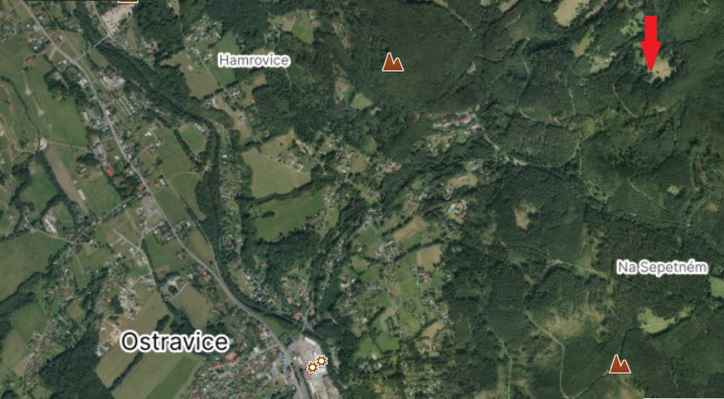 Mapa s místem, kde museli záchranáři zasahovat.Na místě zdravotníci provedli EKG, které potvrdilo infarkt. Zdravotníci proto muži zajistili žilní vstup, podali léky, zahájili podávání kyslíku a připravili jej k transportu. Následně byl pacient za stálého monitorování životních funkcí letecky přepraven do ostravské Fakultní nemocnice, kde jej ve vážném stavu převzali lékaři urgentního příjmu.